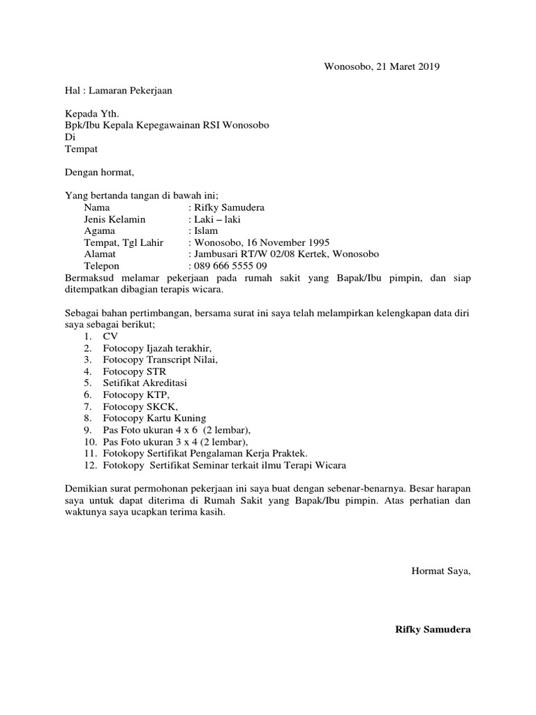 8 Contoh Surat Lamaran Kerja Yang Baik Dan Benar Dilirik Hrd from www.99.co Check spelling or type a new query. Maybe you would like to learn more about one of these? We did not find results for: